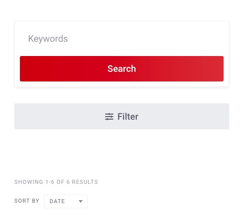 On a mobile device you will see the options as shown below. Apart from searching for keywords, press the filter button to select the specific options you would like to have displayed.